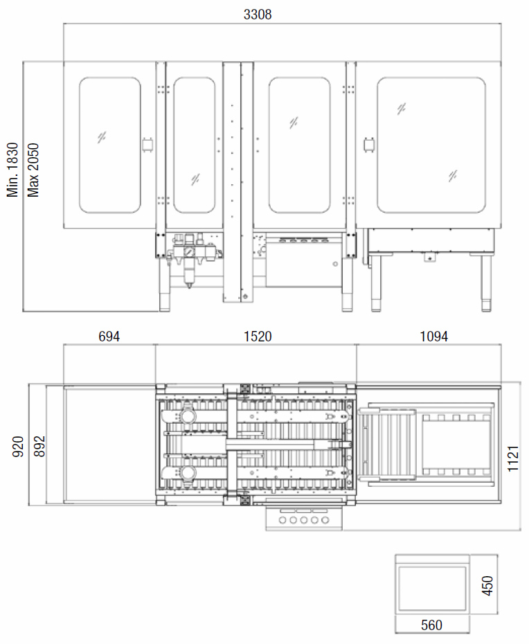 Measures: Length: 3308 mm x Width: 1121 mm x Height: 1830-2050 mm