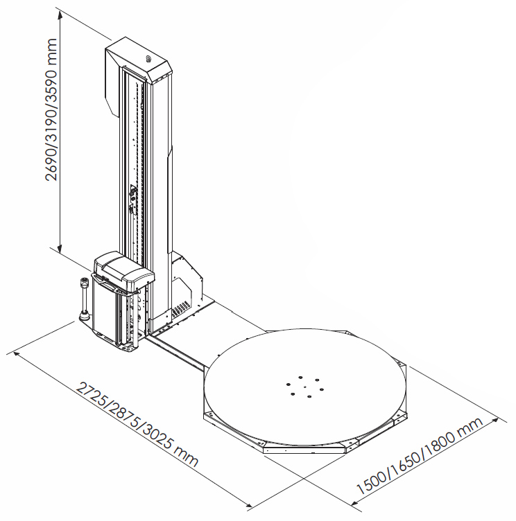 | Durchmesser Drehteller: | 1650 mm / 1800 mm / 2200 mm (wählbar) | ||